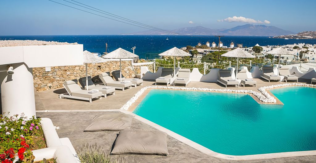 One of Ilio Maris hotel's strongest and exclusive features is without doubt its ideal location in Mykonos town and magnificent view of the sea and Mykonian Windmills.